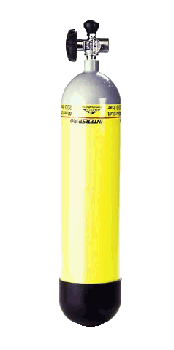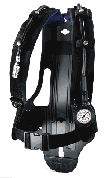 In der Atemluftflasche befindet sich kein 100%er Sauerstoff sondern gefilterte Druckluft. Diese Flasche hat ein Volumen von 6 Litern und einen Fülldruck von 300 bar (1651 Liter Luft). Die Flaschen können aus ca. 4mm Stahl (Gewicht 8 Kg), bzw. aus CFK-Verbundstoffen (Gewicht 4 Kg) bestehen