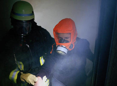 Bei den Feuerwehren werden hauptsächlich Pressluftatmer und Filtergeräte benutzt.Filtergerät