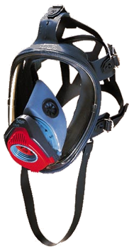 Die Vollmaske schirmt das Gesicht von der Umgebungsluft ab und steuert die Einatem- und Ausatemluft.